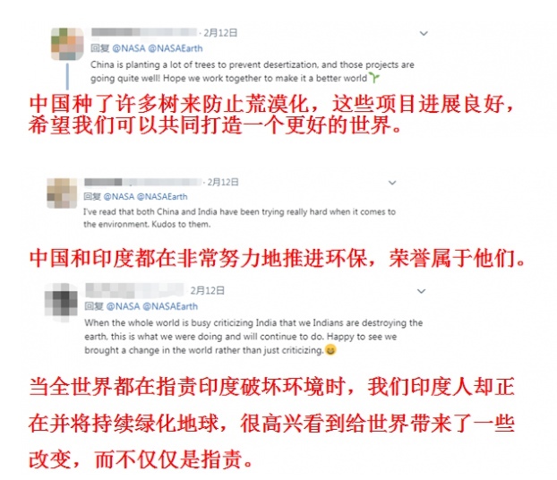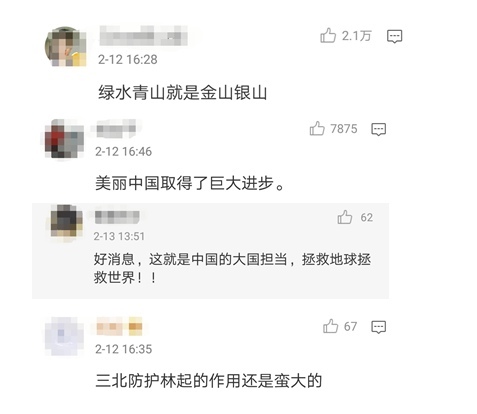 对来自全世界的感谢和鼓励,中国网友们也倍感自豪,不少网友在留言中纷纷"想起"自己为绿化事业出过的一份力: